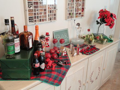 Para receber o bar, escolhemos um móvel baixo que ela utiliza para guardar suas louças e copos.