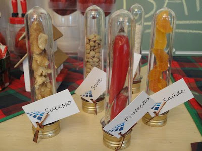 A lembrancinha para todos os participantes foi bem original : tubos de ensaio com mensagens personalizadas.