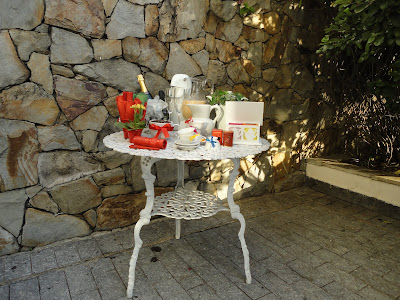 Como havia apenas uma toalha bordada, esta foi utilizada para a mesa da anfitriã.