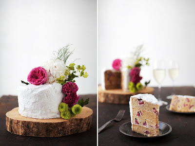 Aqui a rodela de tronco de árvore serve de suporte para o bolo de casamento decorado com pintura artística imitando galhos com flores, ...