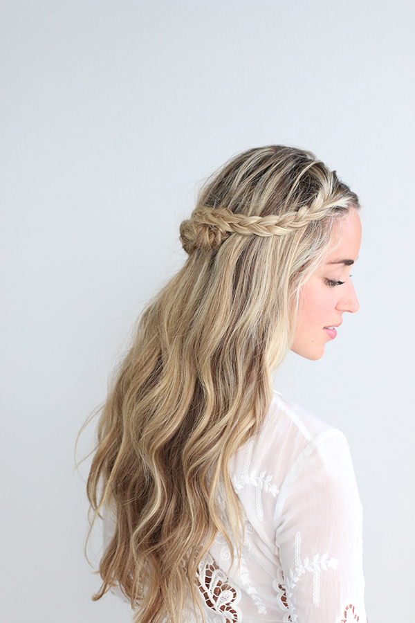 Uma trança semi desmanchada para trás usando também um pouco de cabelos das laterais.
