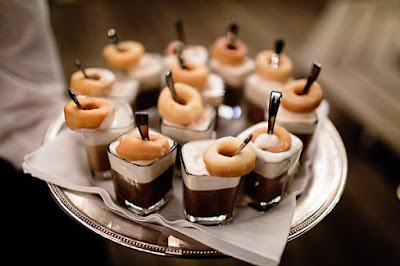 Fica elegante o garçom passar com a bandeja com o cafezinho e a colher no meio do donut.
