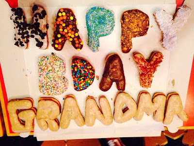 Finalizando, donuts em formato de letras ou números para escrever o nome do festejado ou números para anos ou datas.