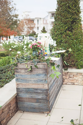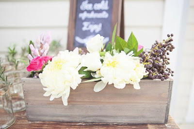Uma coleção de latas de chá vintage de Scarlett fizeram sucesso como vasos para arranjos florais com espécies da estação nas cores da paleta.