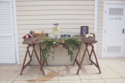 A estação dos chás ficou num balcão montado ao lado da mesa, com jarras, taças, mexedores, gelo.