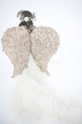 Para a sessão de fotos a noiva usou o par de asas maior para ... voar e sonhar.