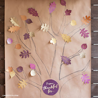 Aqui, no papel craft, igual à tolha da mesa, foi desenhado contorno de uma árvore com vários galhos .... a Árvore de Agradecimento !