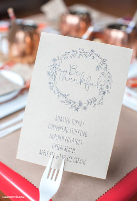 Para o almoço do Dia de Ação de Graças, Jacin Fitzgerald do site Little Lovely Details, criou uma mesa diferente.