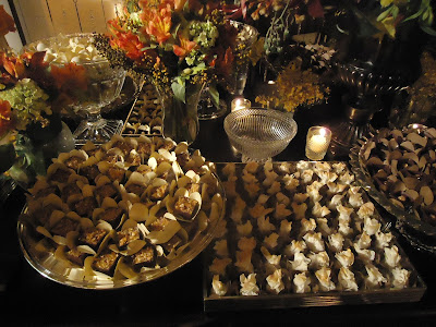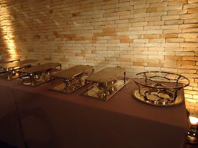 O bufê foi montado nas duas laterais do salão para melhor atender o número de convidados, com menu extenso e bem variado.