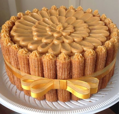 A seguir apareceram os churros em formato de super produções : bolos com churros em pé ou em camadas.