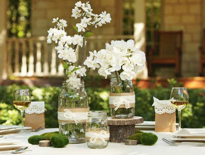 E arranjos de flores, aqui combinando com as toalhas.
